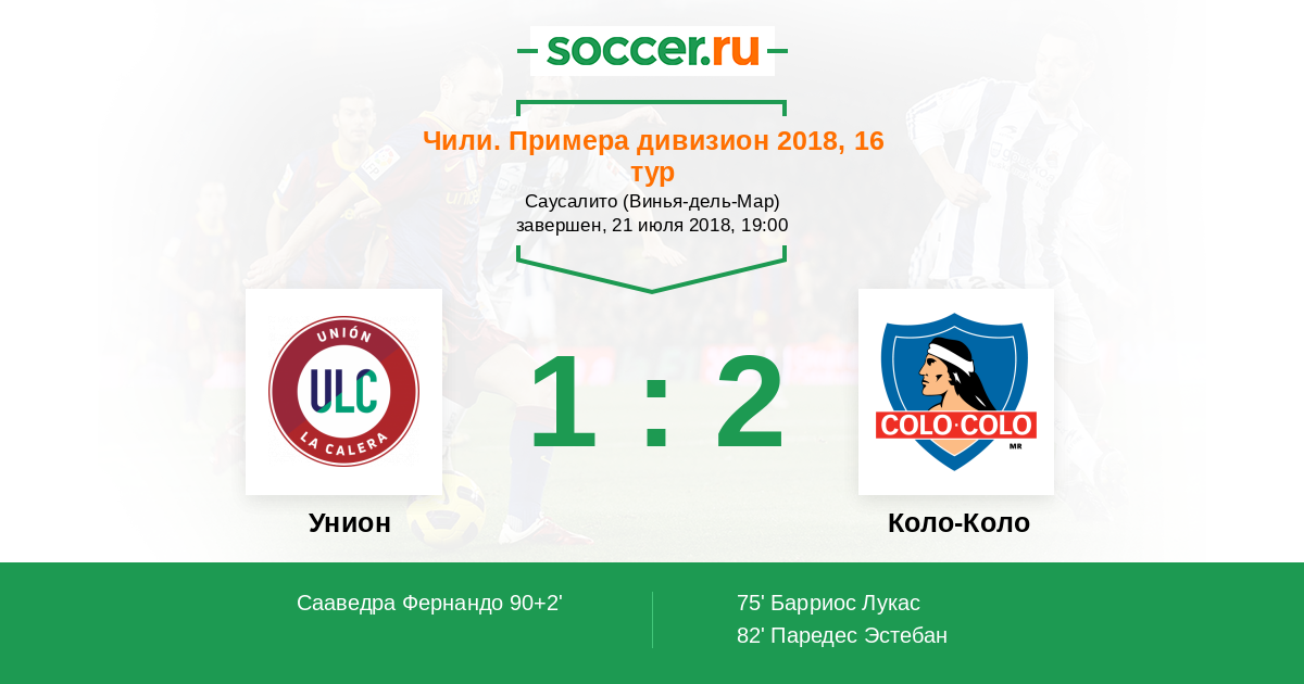 Протокол матча Унион против Коло-Коло