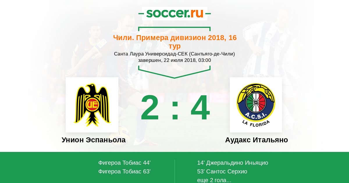 Протокол матча Унион Эспаньола против Аудакс Итальяно