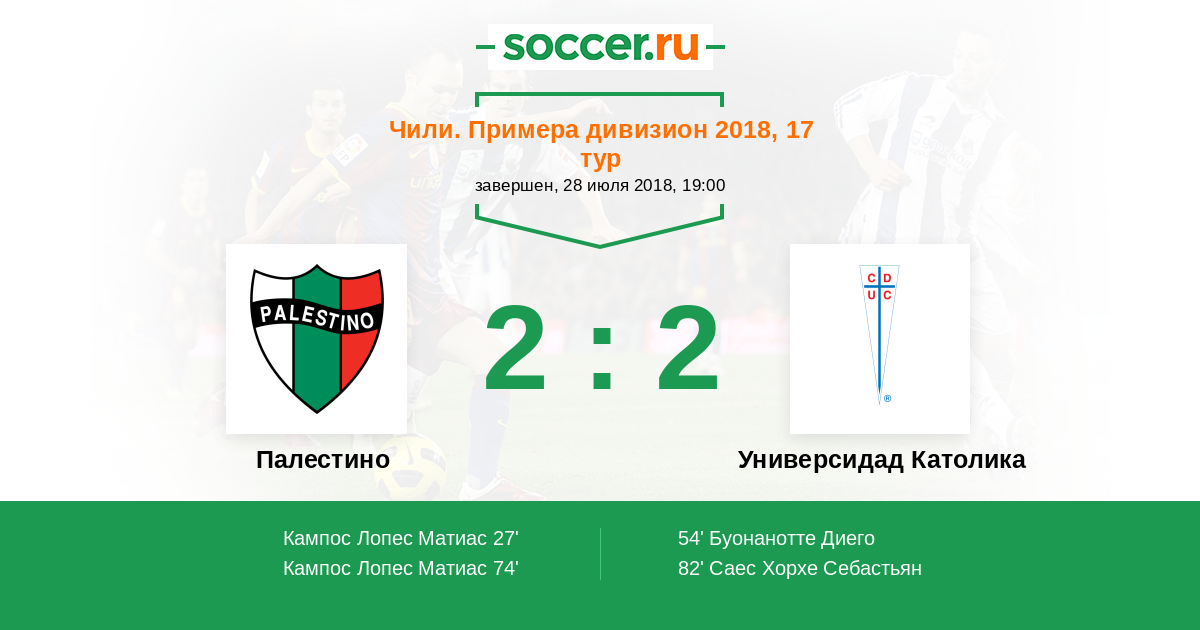 Протокол матча Палестино против Универсидад Католика