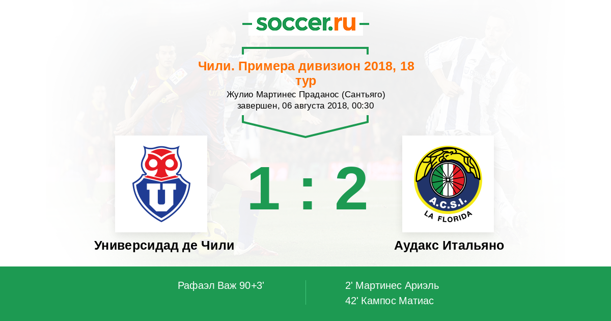 Протокол матча Универсидад де Чили против Аудакс Итальяно