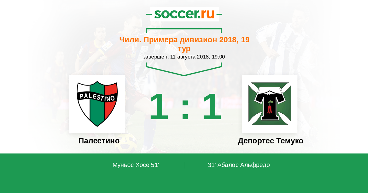51' (1:1) Муньос Хосе (11) (Сото Гильермо (20))