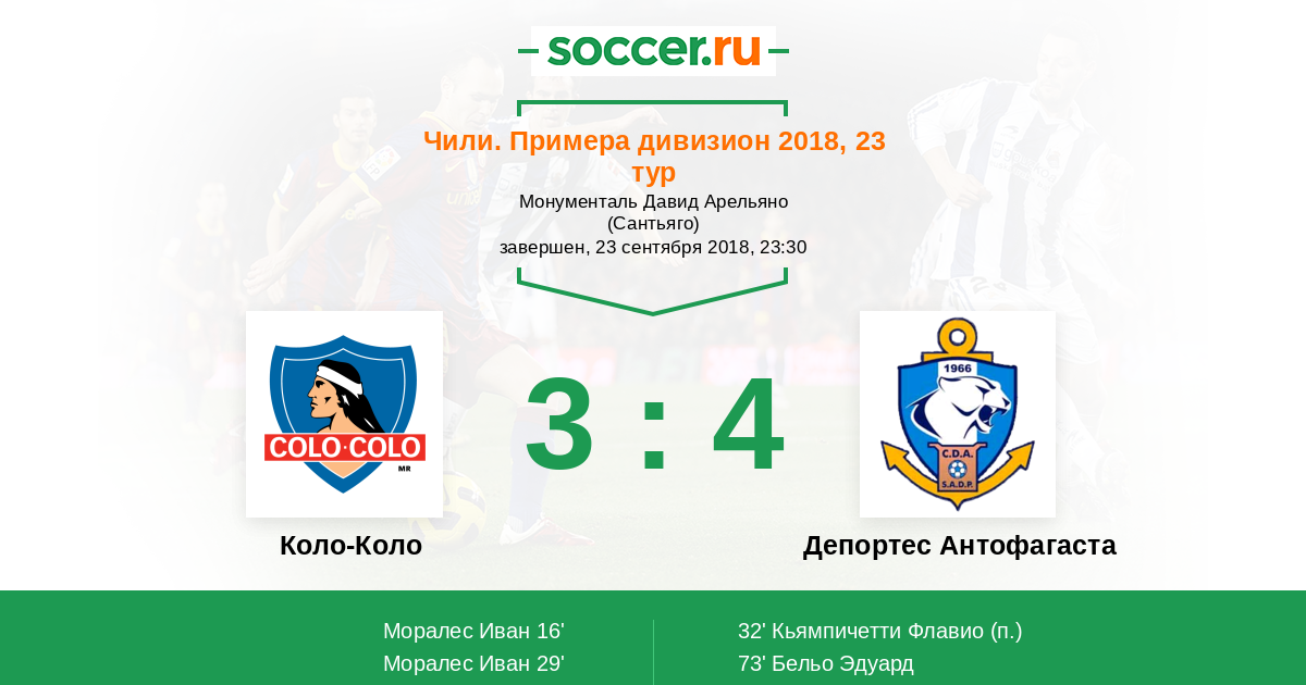 Протокол матча Коло-Коло против Депортес Антофагаста