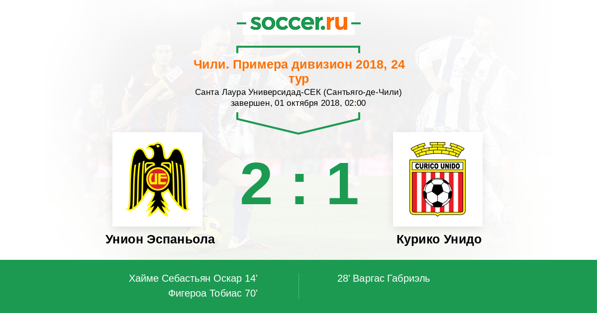 Протокол матча Унион Эспаньола против Курико Унидо