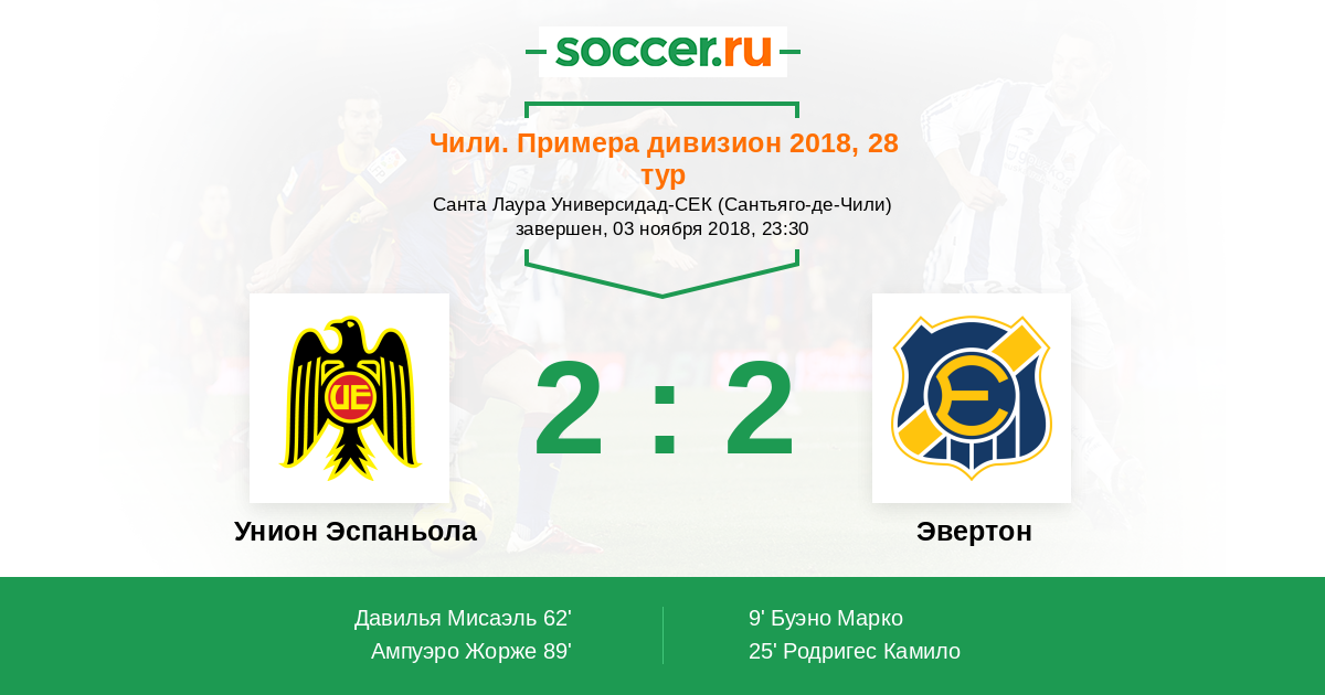 Протокол матча Унион Эспаньола против Эвертон