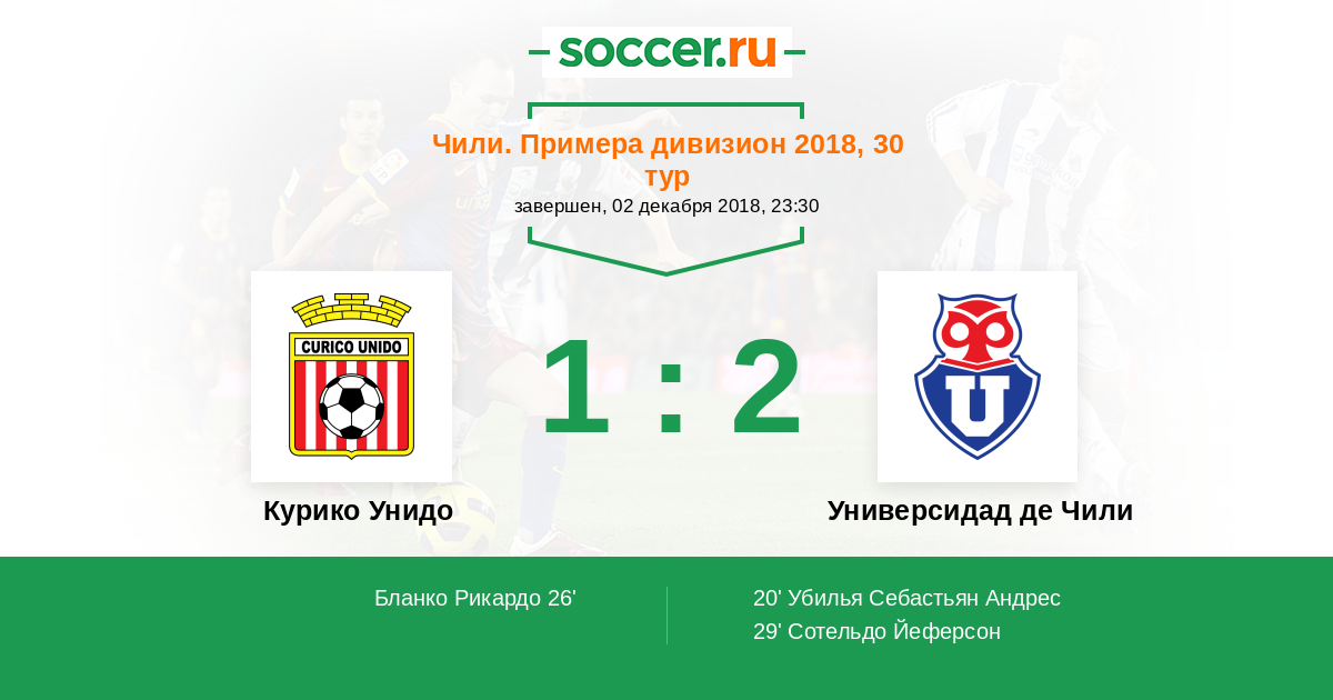 20' (0:1) Убилья Себастьян Андрес (21) (Вильчес Кристиан (2))