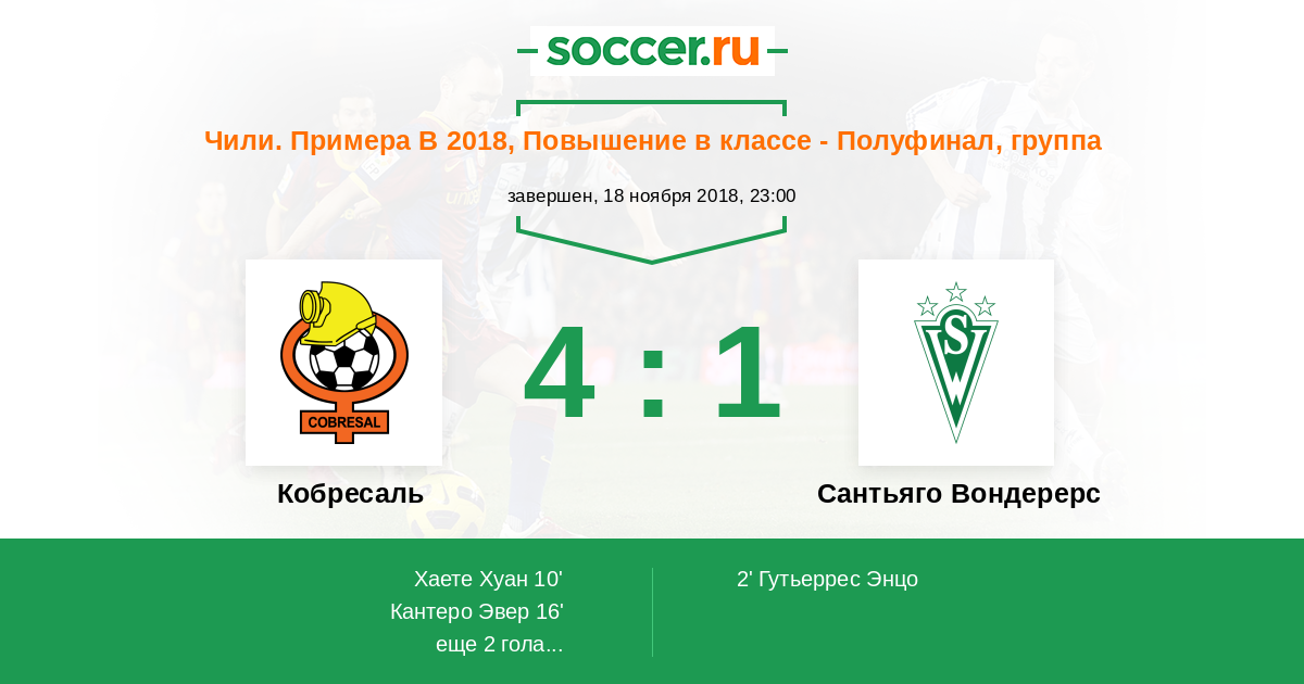 Протокол матча Кобресаль против Сантьяго Вондерерс