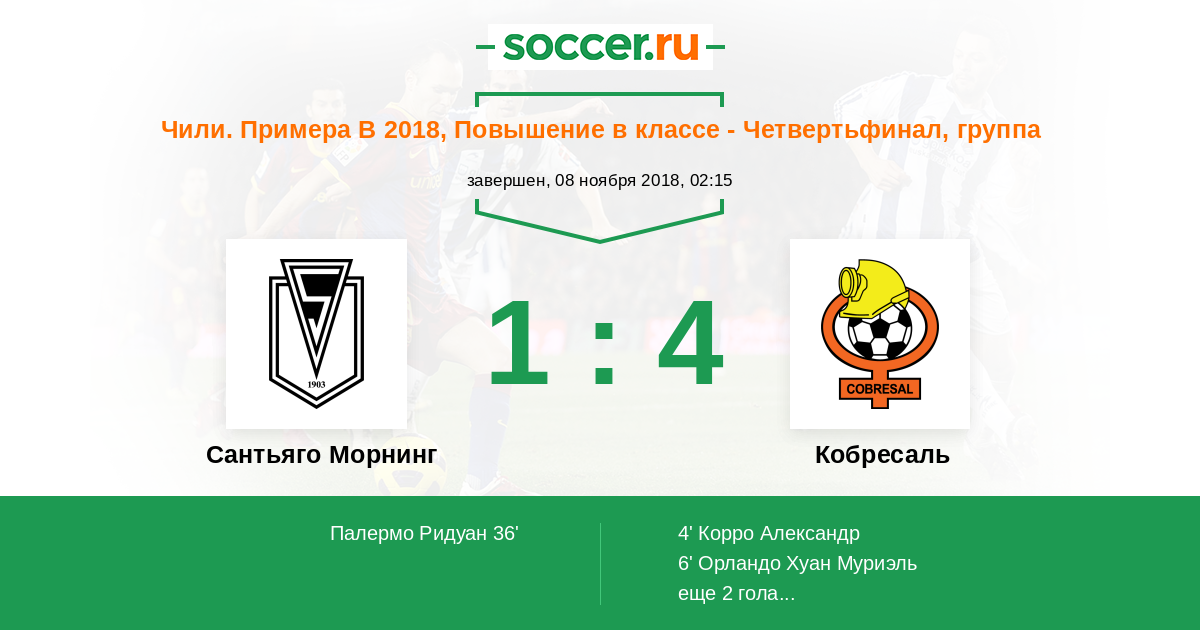 Протокол матча Сантьяго Морнинг против Кобресаль