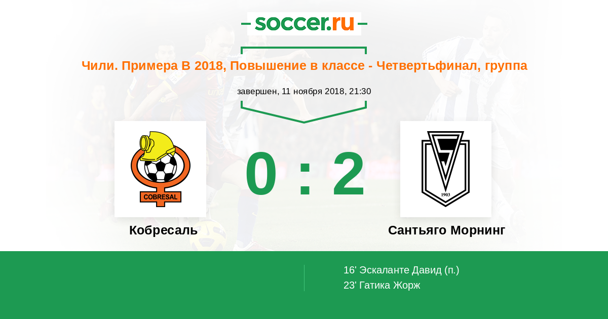 Протокол матча Кобресаль против Сантьяго Морнинг