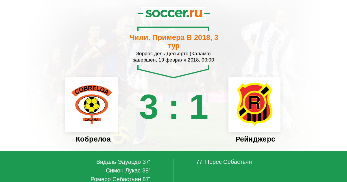 Протокол матча Кобрелоа против Рейнджерс