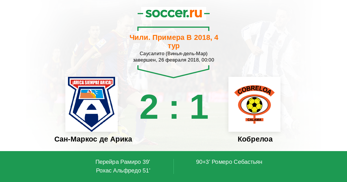 Протокол матча Сан-Маркос де Арика против Кобрелоа