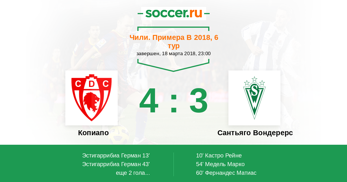 Протокол матча Копиапо против Сантьяго Вондерерс