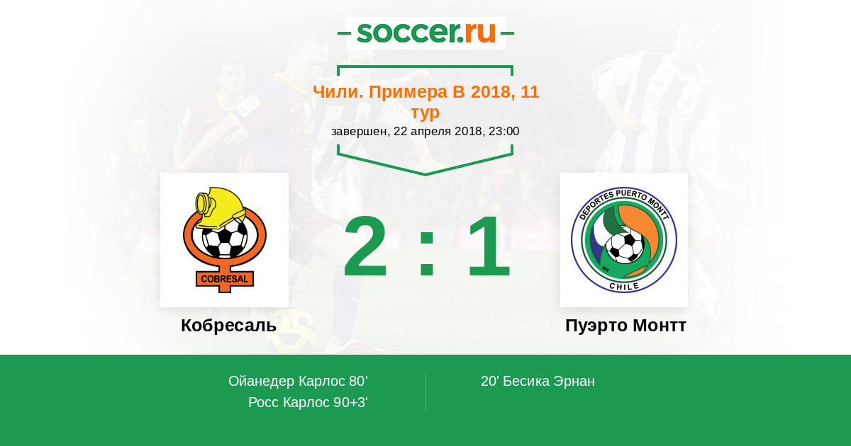 Протокол матча Кобресаль против Пуэрто Монтт