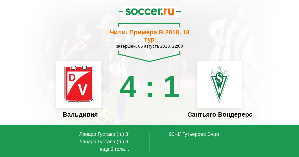 Протокол матча Вальдивия против Сантьяго Вондерерс