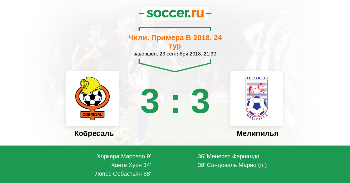 Протокол матча Кобресаль против Мелипилья