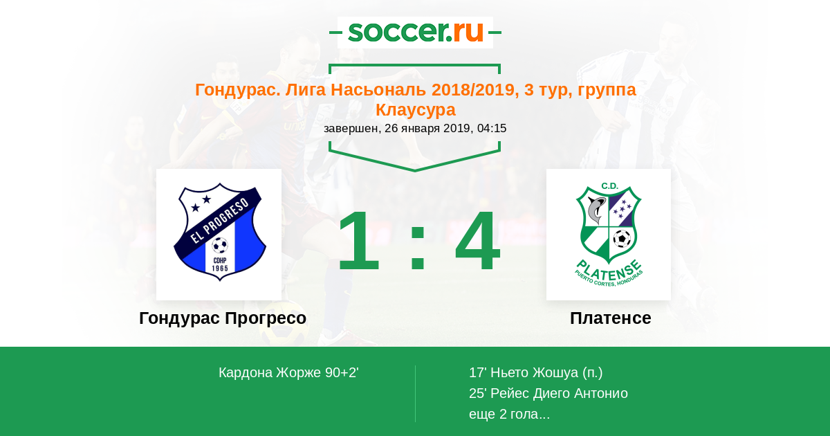 Протокол матча Гондурас Прогресо против Платенсе