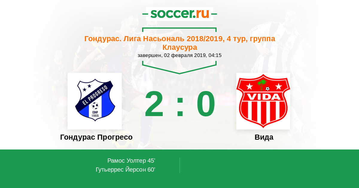 Протокол матча Гондурас Прогресо против Вида