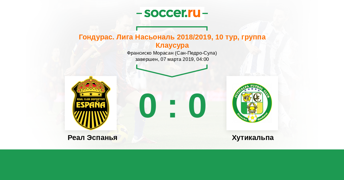 Гондурас. Лига Насьональ 29.07.2018 Хутикальпа Логотип футбольный клуб Хутикальпа 1:1 Логотип футбольный клуб Реал Эспанья (Сан-Педро-Сула) Реал Эспанья