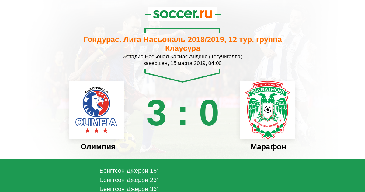 Протокол матча Олимпия против Марафон