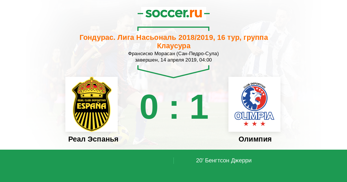 Протокол матча Реал Эспанья против Олимпия