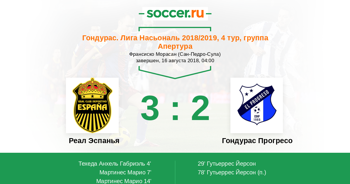 Протокол матча Реал Эспанья против Гондурас Прогресо