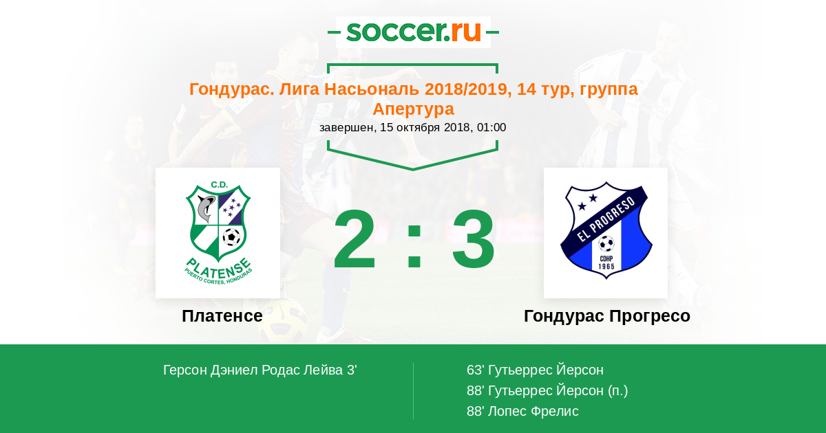 Протокол матча Платенсе против Гондурас Прогресо