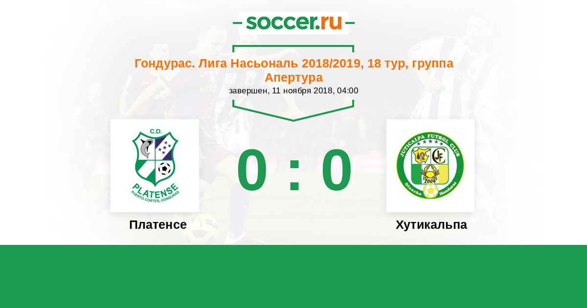 Гондурас. Лига Насьональ 13.09.2018 Хутикальпа Логотип футбольный клуб Хутикальпа 1:1 Логотип футбольный клуб Платенсе (Пуэрто Кортес) Платенсе