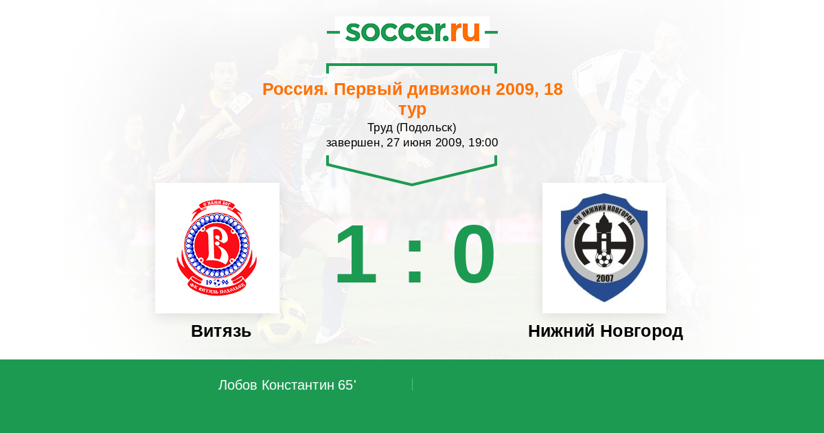 Протокол матча Витязь против Нижний Новгород