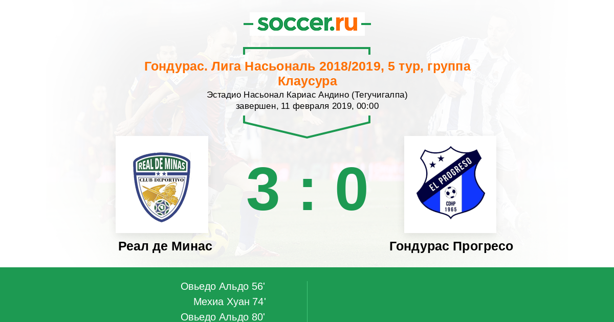Протокол матча Реал де Минас против Гондурас Прогресо