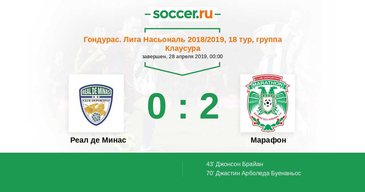 Протокол матча Реал де Минас против Марафон
