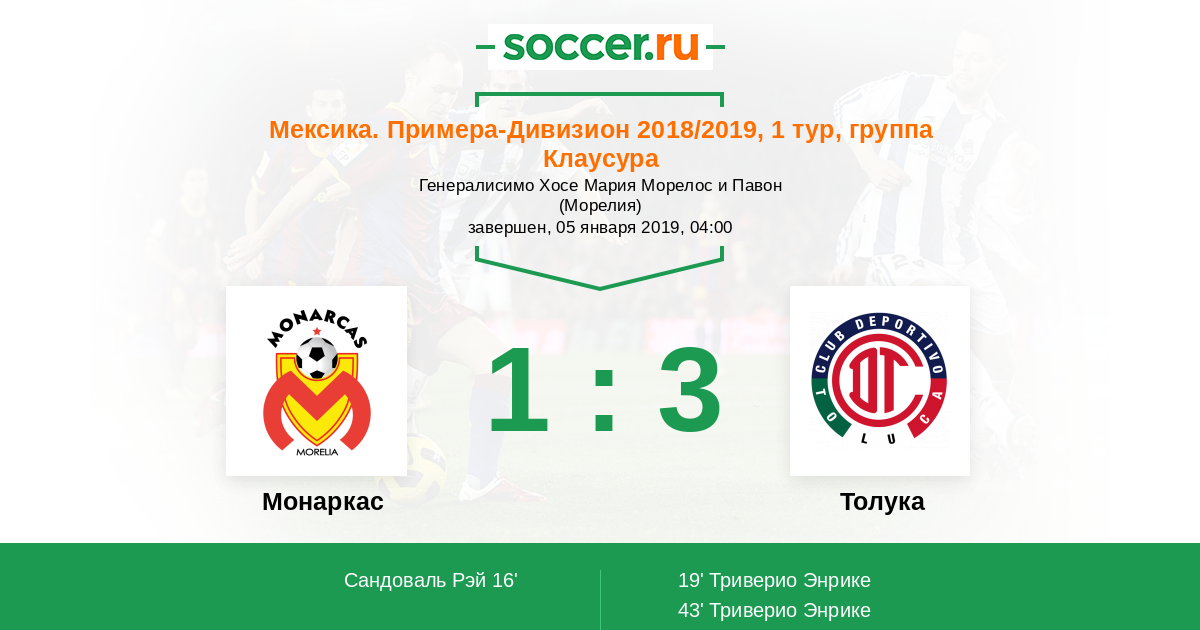 19' (1:1) Триверио Энрике (21) (Мора Адриан (84))