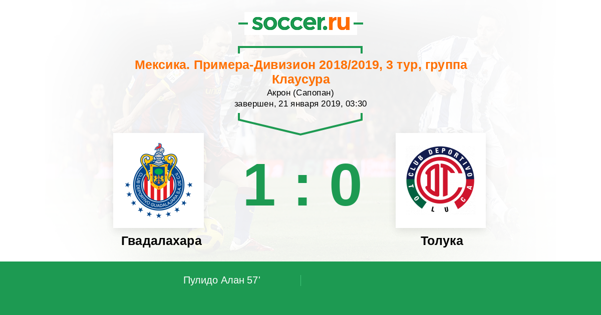 57' (1:0) Пулидо Алан (9) (Бельтран Фернандос (288))