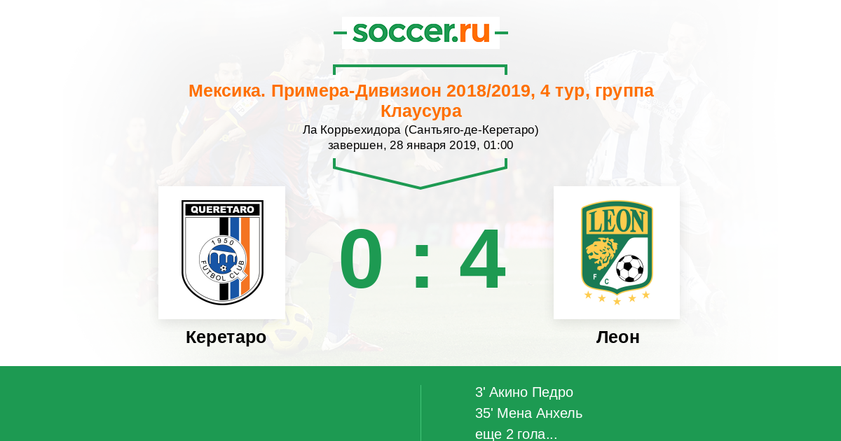 Протокол матча Керетаро против Леон