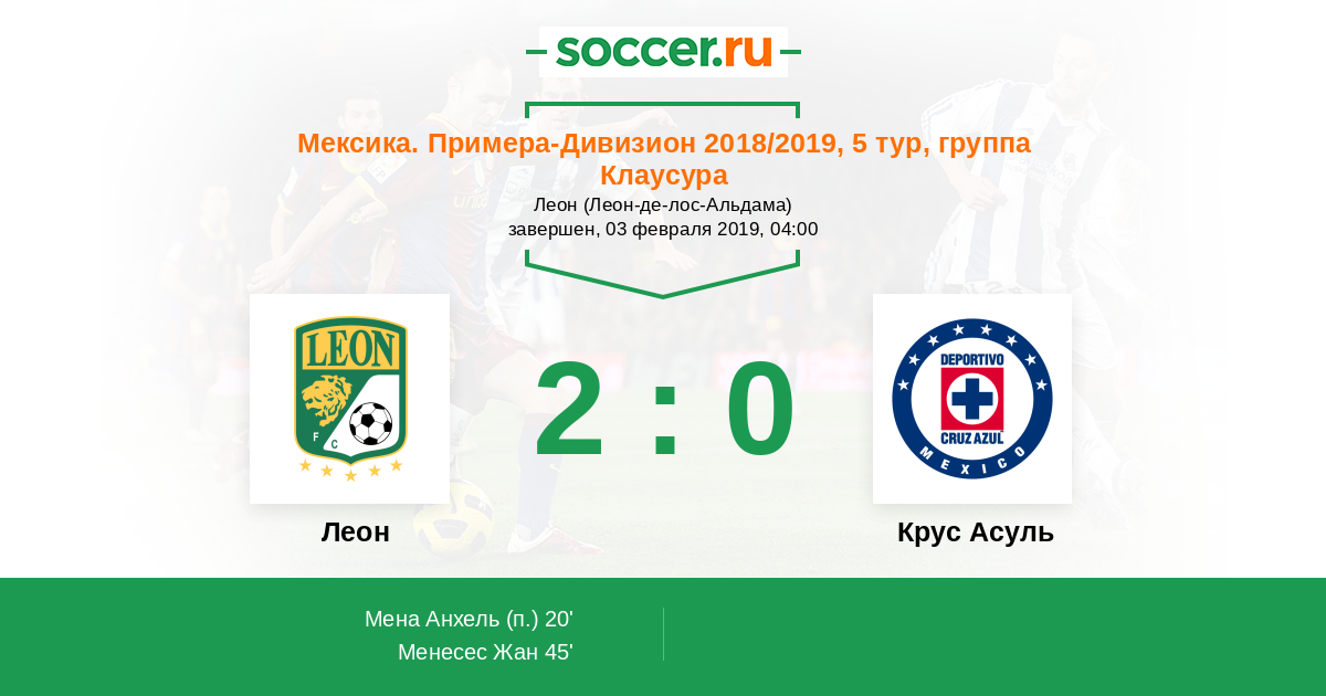 Протокол матча Леон против Крус Асуль