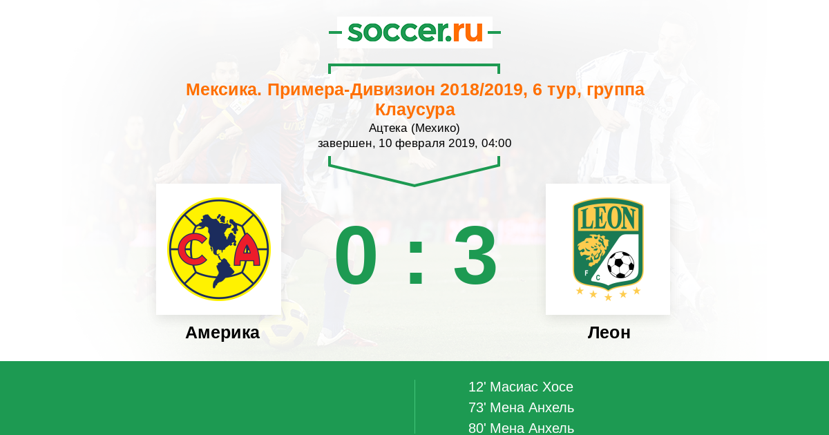 73' (0:2) Мена Анхель (13) (Менесес Жан (16))