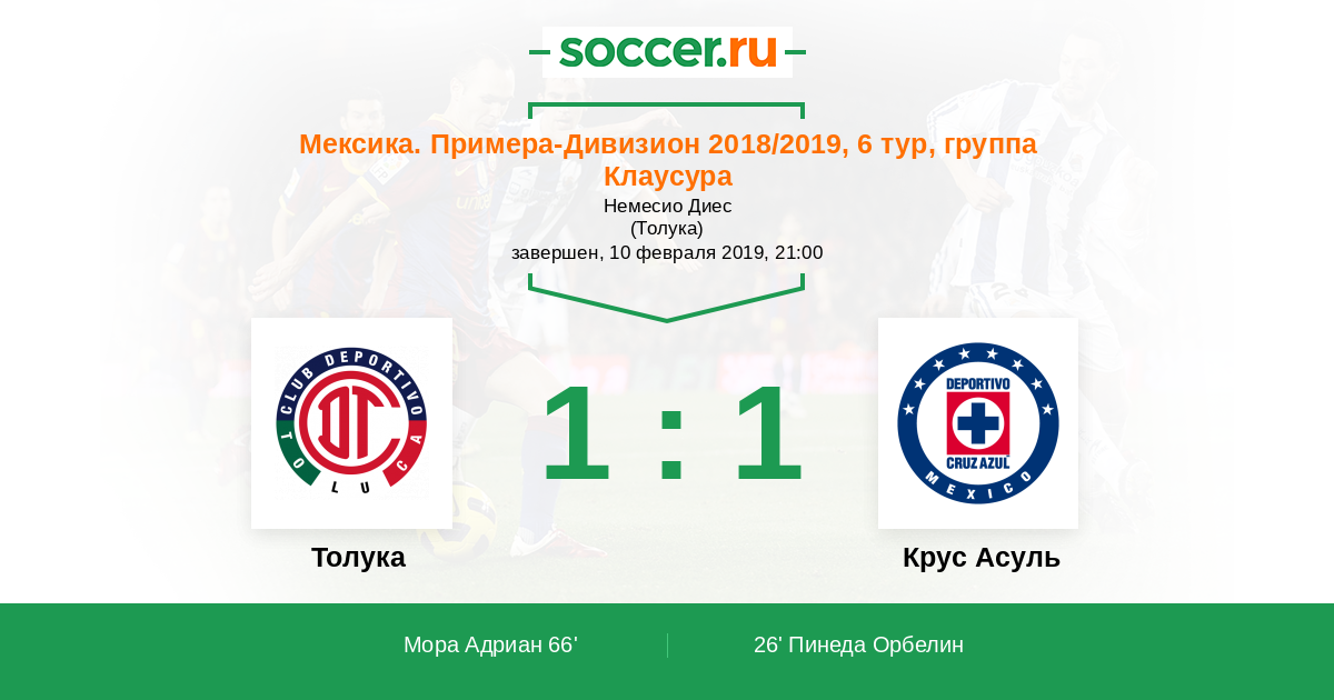 Протокол матча Толука против Крус Асуль