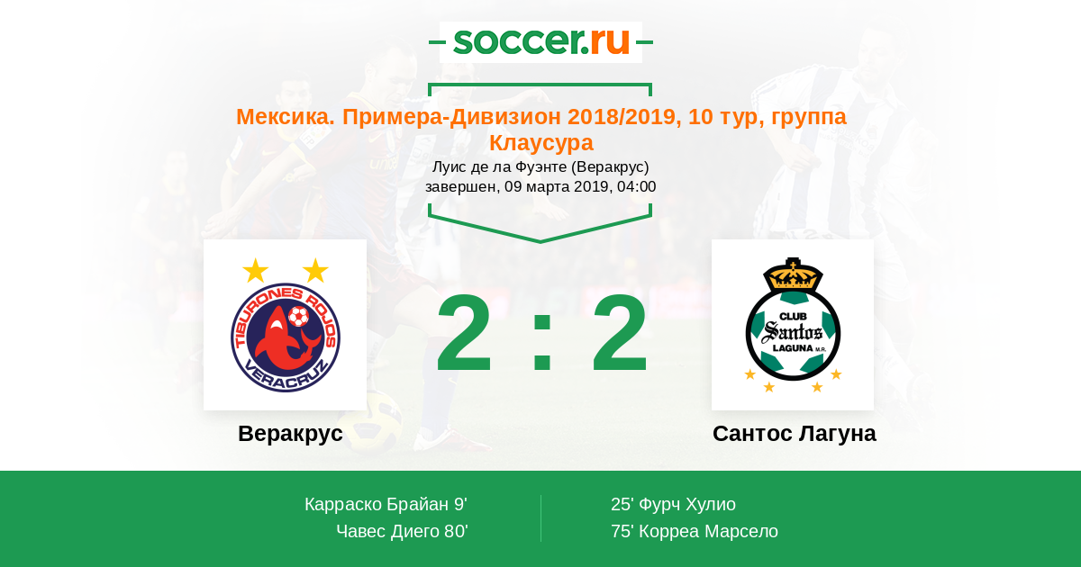 Протокол матча Веракрус против Сантос Лагуна