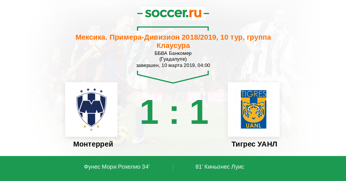 Протокол матча Монтеррей против Тигрес УАНЛ
