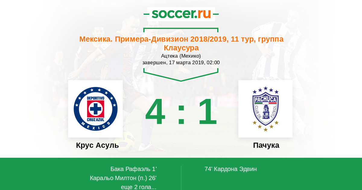 1' (1:0) Бака Рафаэль (22) (Пинеда Орбелин (31))