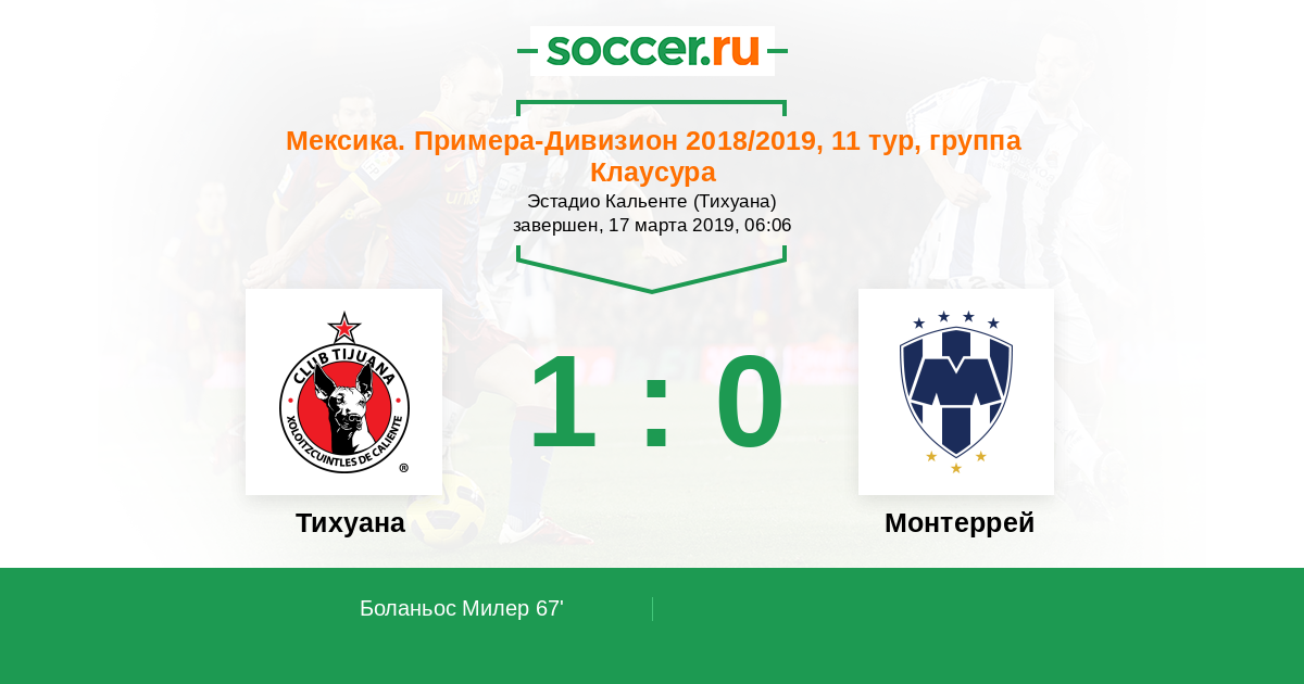 67' (1:0) Боланьос Милер (23) (Боу Густаво (12))