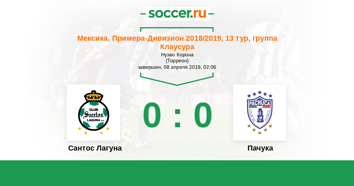 Протокол матча Сантос Лагуна против Пачука