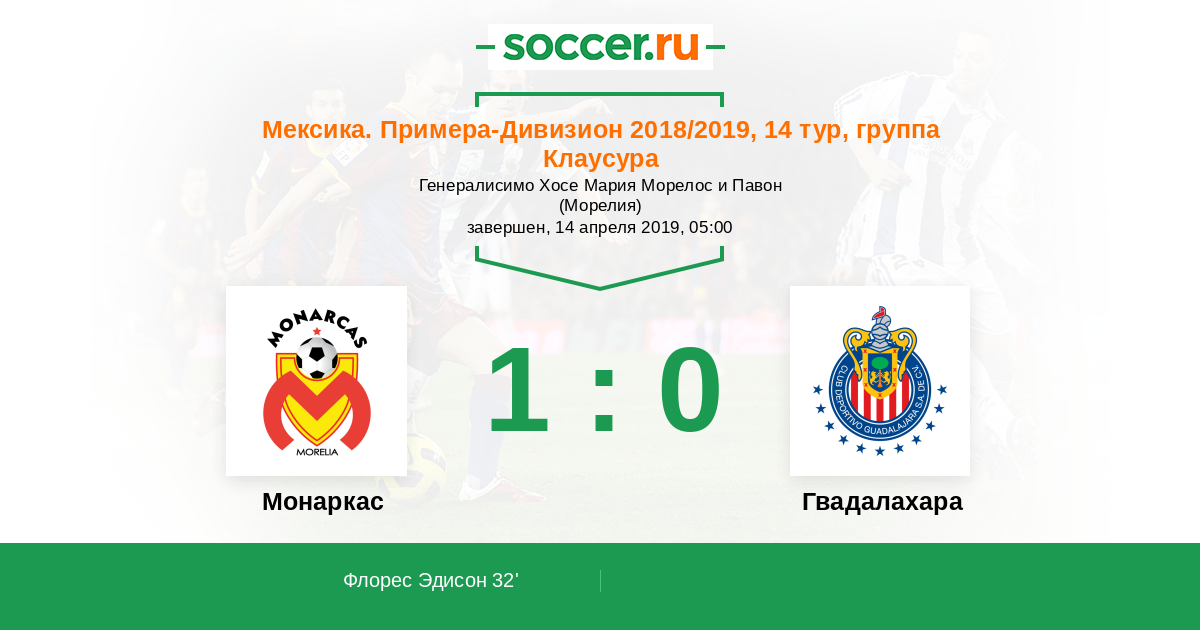 Протокол матча Монаркас против Гвадалахара