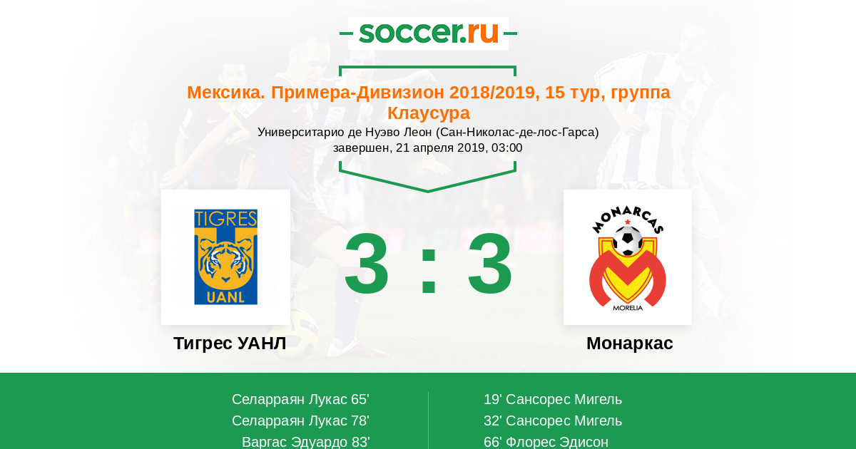 19' (0:1) Сансорес Мигель (27) (Рамирес Кандидо (15))