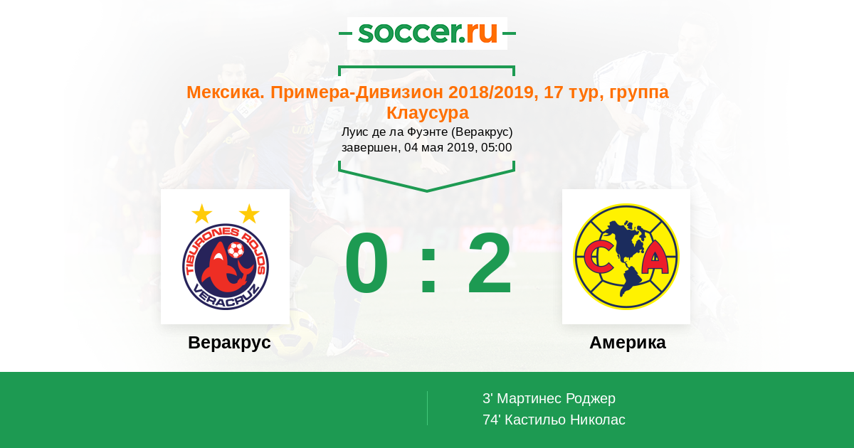Протокол матча Веракрус против Америка