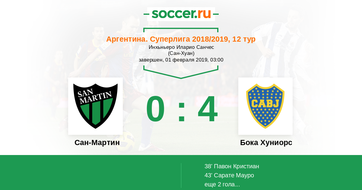 Протокол матча Сан-Мартин против Бока Хуниорс