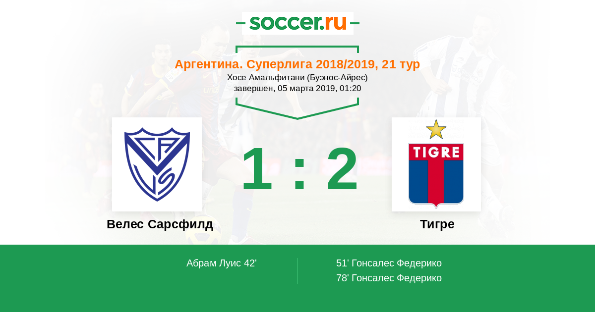 Протокол матча Велес Сарсфилд против Тигре