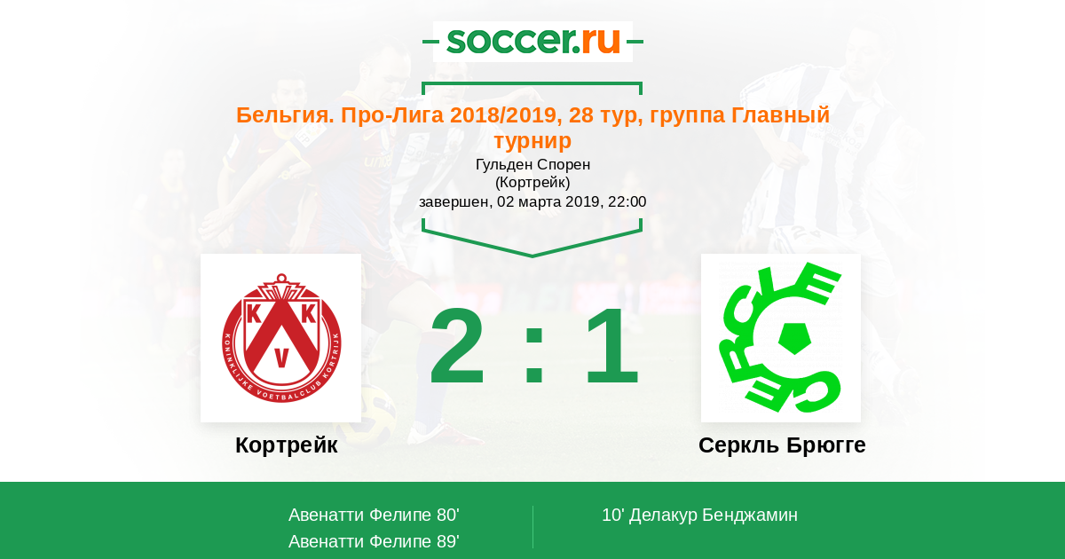 Протокол матча Кортрейк против Серкль Брюгге