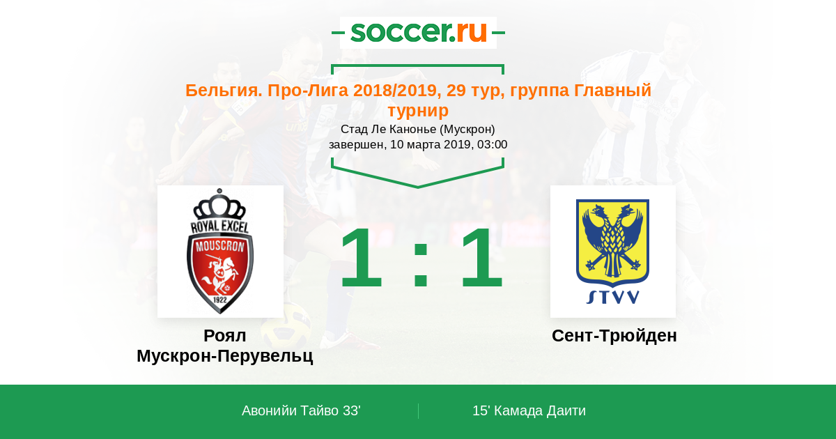 Протокол матча Роял Мускрон-Перувельц против Сент-Трюйден