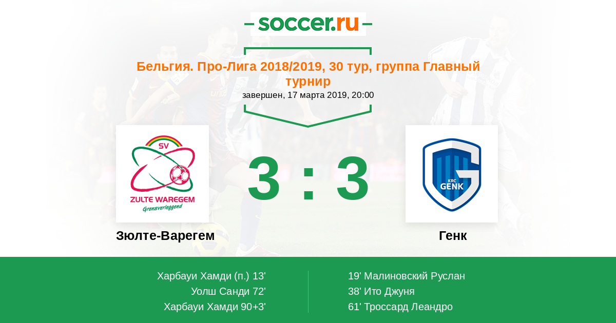 61' (1:3) Троссард Леандро (14) (Саматта Мбвана (10))