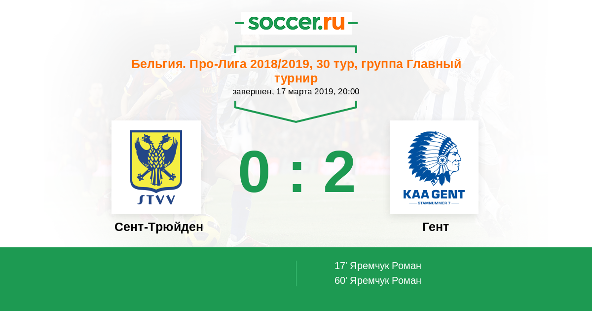 Протокол матча Сент-Трюйден против Гент