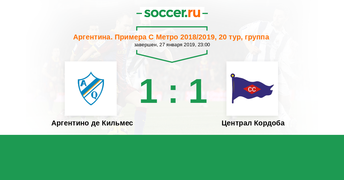 Аргентина. Примера С Метро 03.02.2018 Централ Кордоба Логотип футбольный клуб Централ Кордоба 2:2 Логотип футбольный клуб Аргентино де Кильмес Аргентино де Кильмес